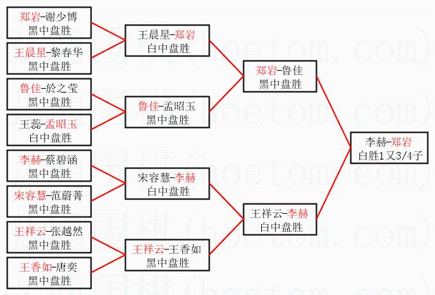 1.郑岩获得冠军,李赫获得亚军。决赛比分:郑岩1:0李赫。棋局: