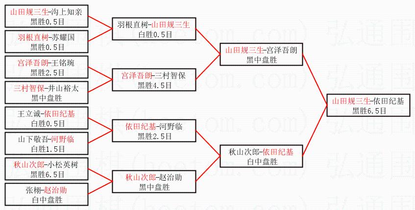1.山田规三生获得冠军,依田纪基获得亚军。决赛比分:山田规三生1:0依田纪基。棋局: