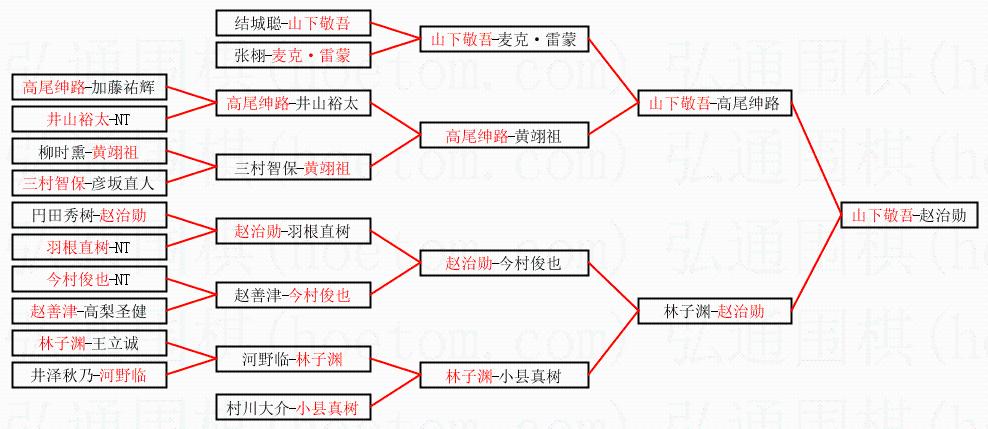 1.山下敬吾获得冠军,赵治勋获得亚军。决赛比分:山下敬吾1:0赵治勋。棋局: