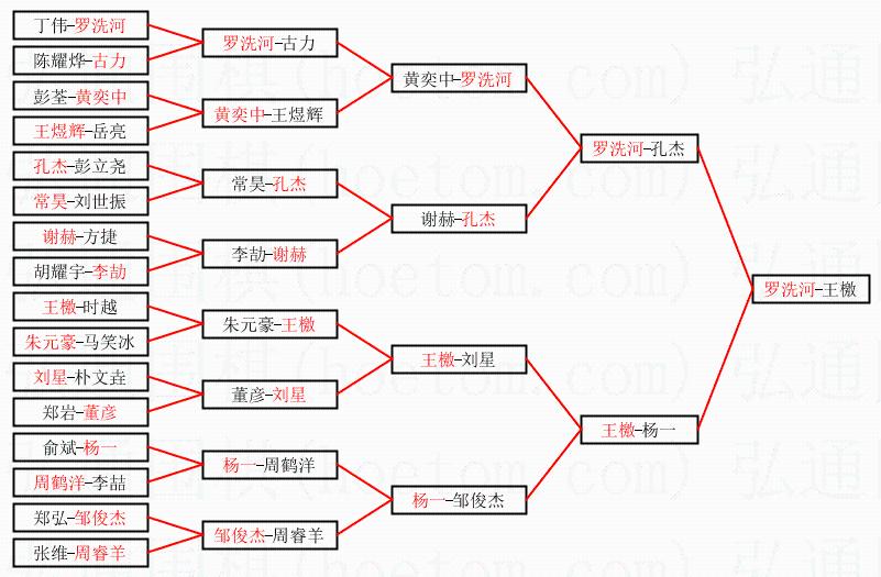 1.罗洗河获得冠军,王檄获得亚军。决赛比分:罗洗河1:0王檄。棋局: