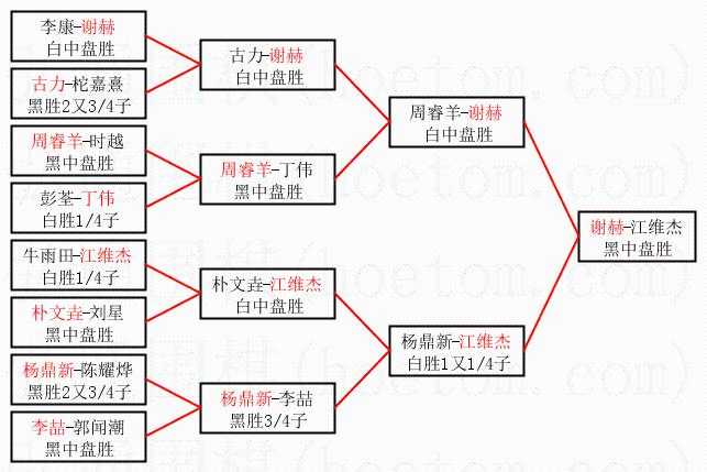 3.下半区半决赛江维杰获胜,比分:江维杰1:0杨鼎新。棋局: