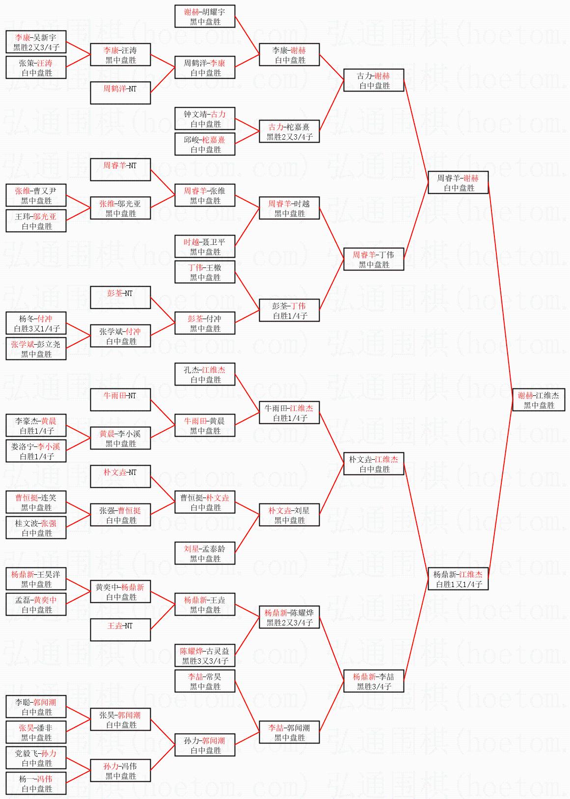 1.谢赫获得冠军,江维杰获得亚军。决赛比分:谢赫1:0江维杰。棋局: