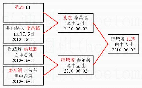 1.孔杰获得冠军,结城聪获得亚军。决赛比分:孔杰1:0结城聪。棋局: