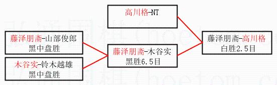 | 3.下半区半决赛藤泽朋斋获胜,比分:藤泽朋斋1:0木谷实。棋局: | ||
