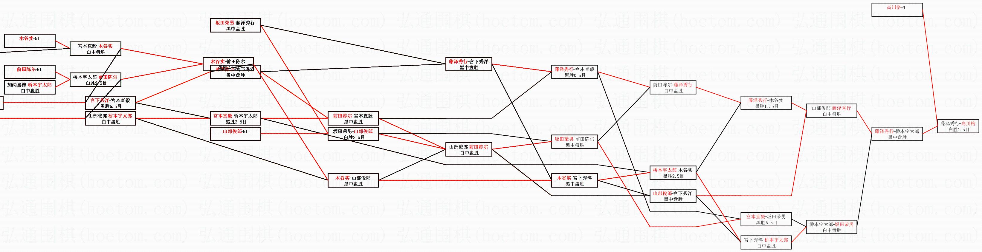3.下半区半决赛藤泽秀行获胜,比分:藤泽秀行1:0桥本宇太郎。棋局: