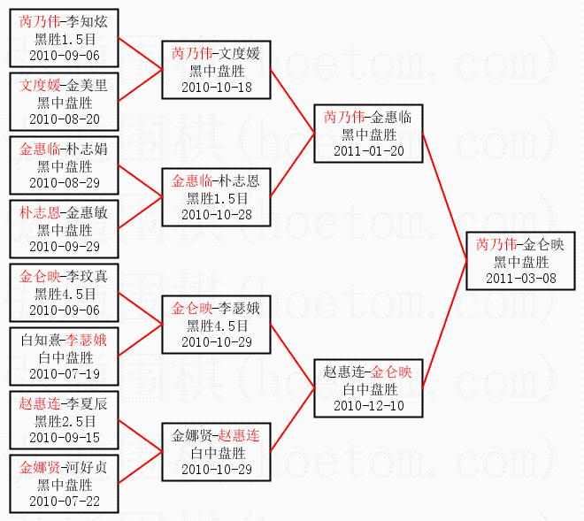 3.下半区半决赛金仑映获胜,比分:金仑映1:0赵惠连。棋局: