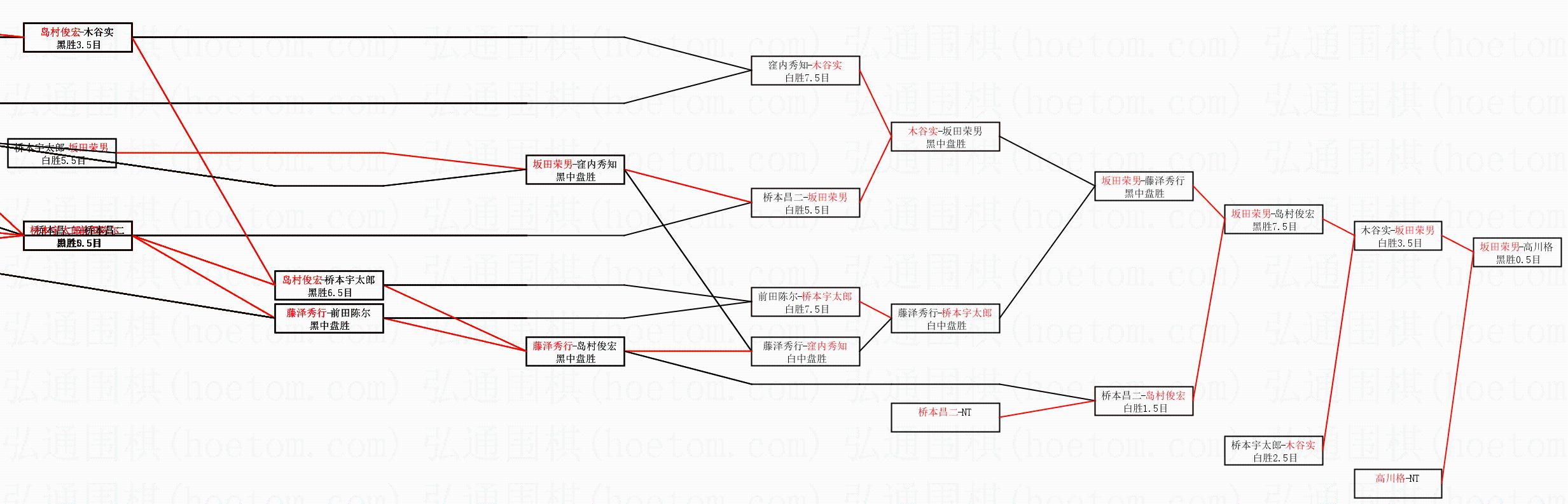 | 2.上半区半决赛坂田荣男获胜, 比分:坂田荣男 1:0 木谷实。棋局: | ||