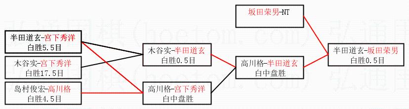 | 1.坂田荣男获得冠军,半田道玄获得亚军。决赛比分:坂田荣男4:1半田道玄。棋局: | ||