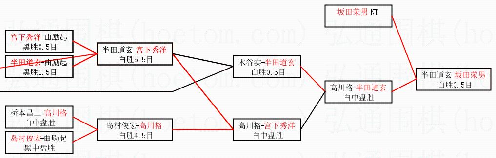 | 1.坂田荣男获得冠军,半田道玄获得亚军。决赛比分:坂田荣男4:1半田道玄。棋局: | ||