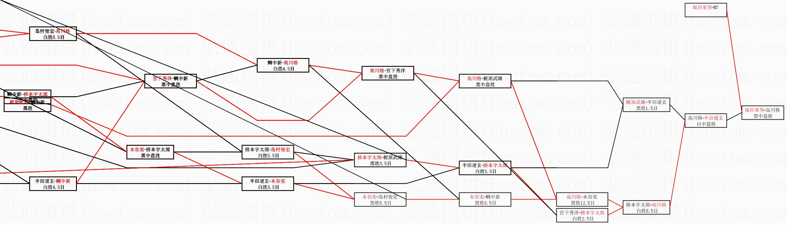 1.坂田荣男获得冠军,高川格获得亚军。决赛比分:坂田荣男4:2高川格。棋局: