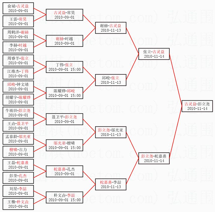 1.古灵益获得冠军,彭立尧获得亚军。决赛比分:古灵益1:0彭立尧。棋局: