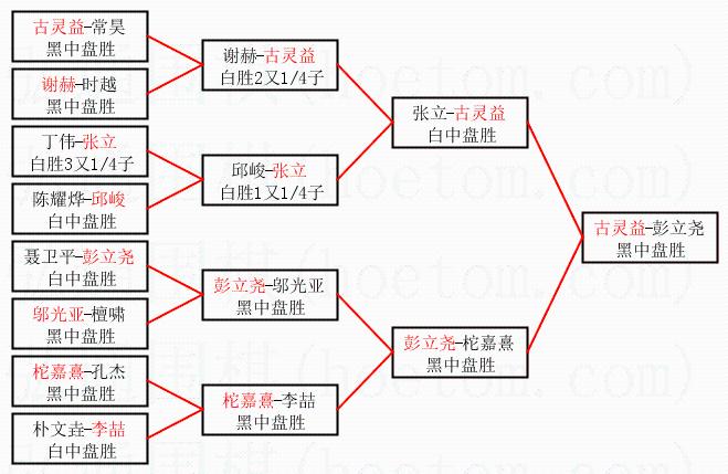 1.古灵益获得冠军,彭立尧获得亚军。决赛比分:古灵益1:0彭立尧。棋局: