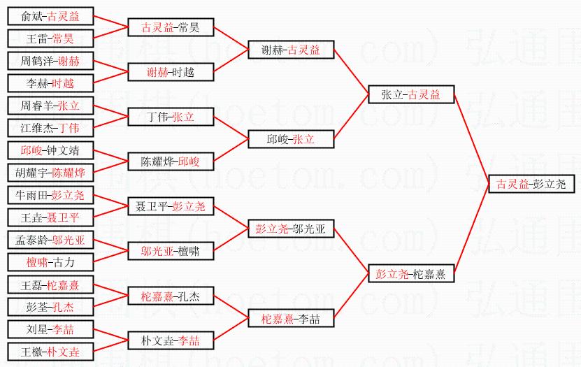 1.古灵益获得冠军,彭立尧获得亚军。决赛比分:古灵益1:0彭立尧。棋局: