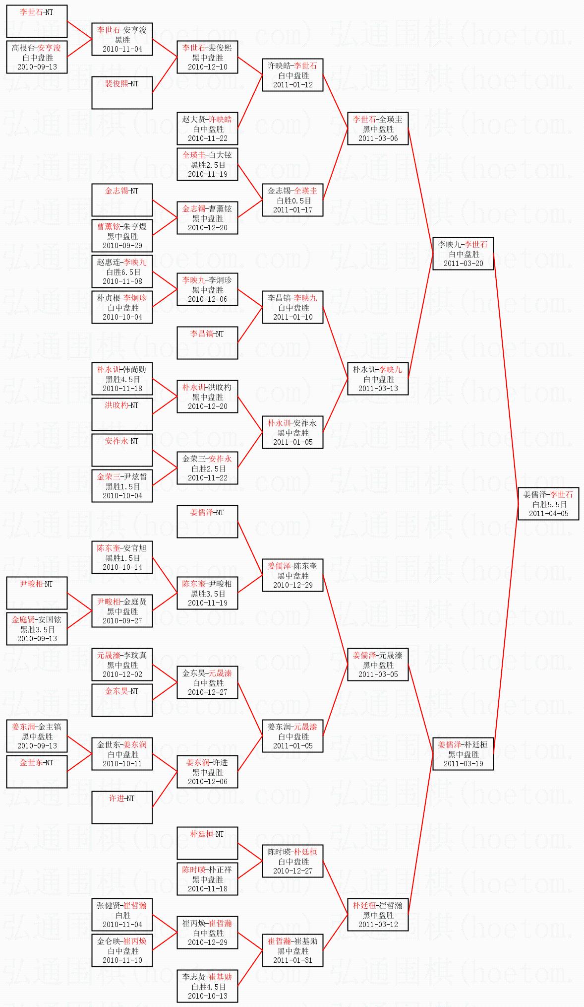 | 2011-04-04 姜儒泽-李世石 黑胜0.5目 | ||