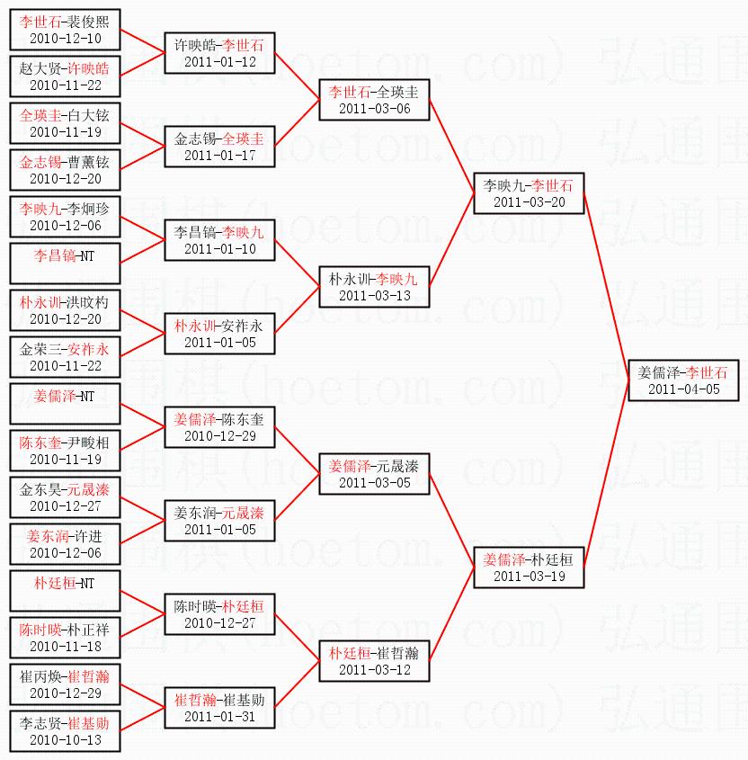 | 2011-04-04 姜儒泽-李世石 黑胜0.5目 | ||