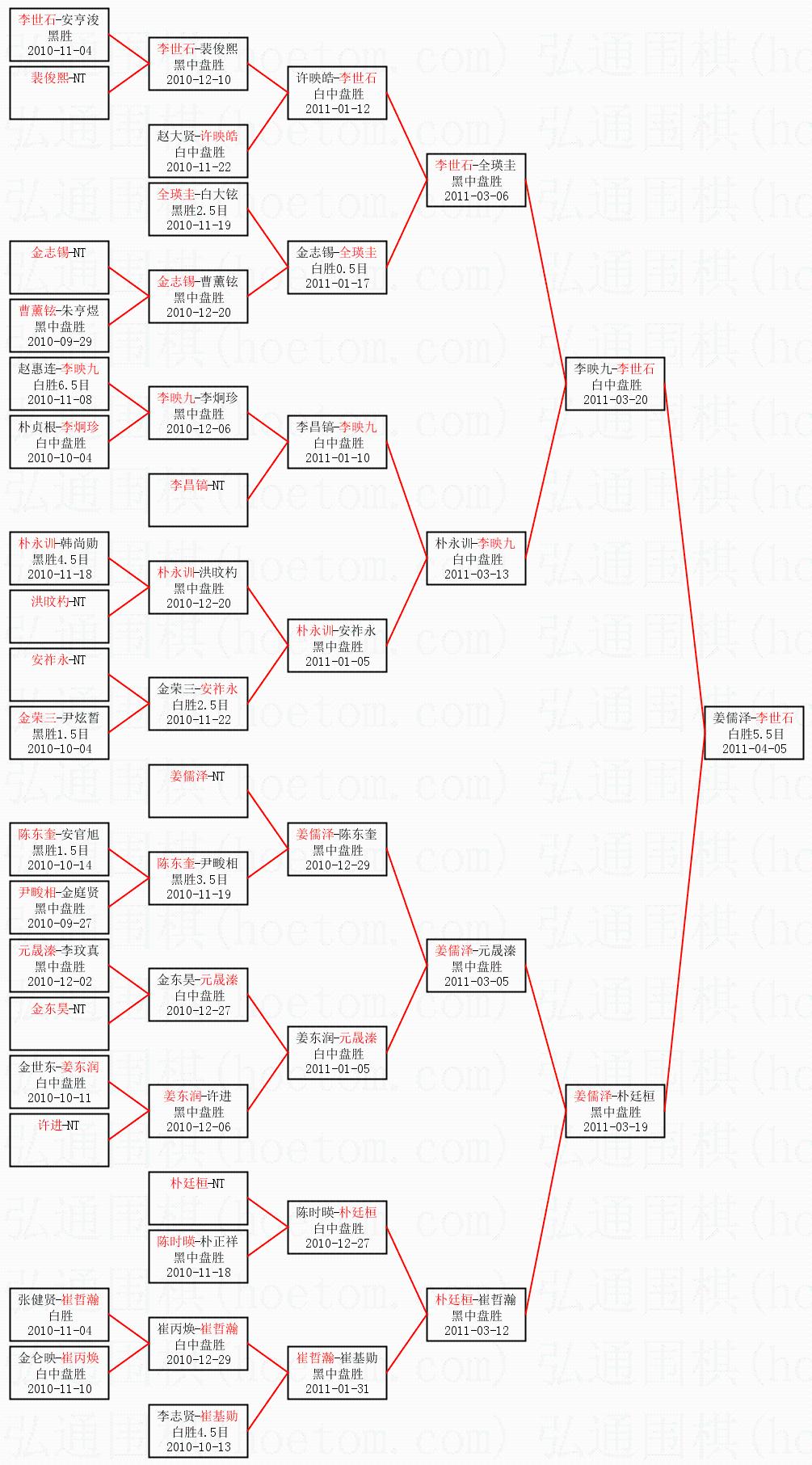 | 2011-04-04 姜儒泽-李世石 黑胜0.5目 | ||