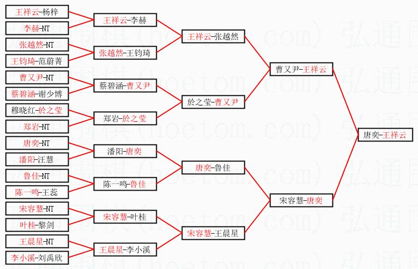 1.王祥云获得冠军,唐奕获得亚军。决赛比分:王祥云2:1唐奕。棋局: