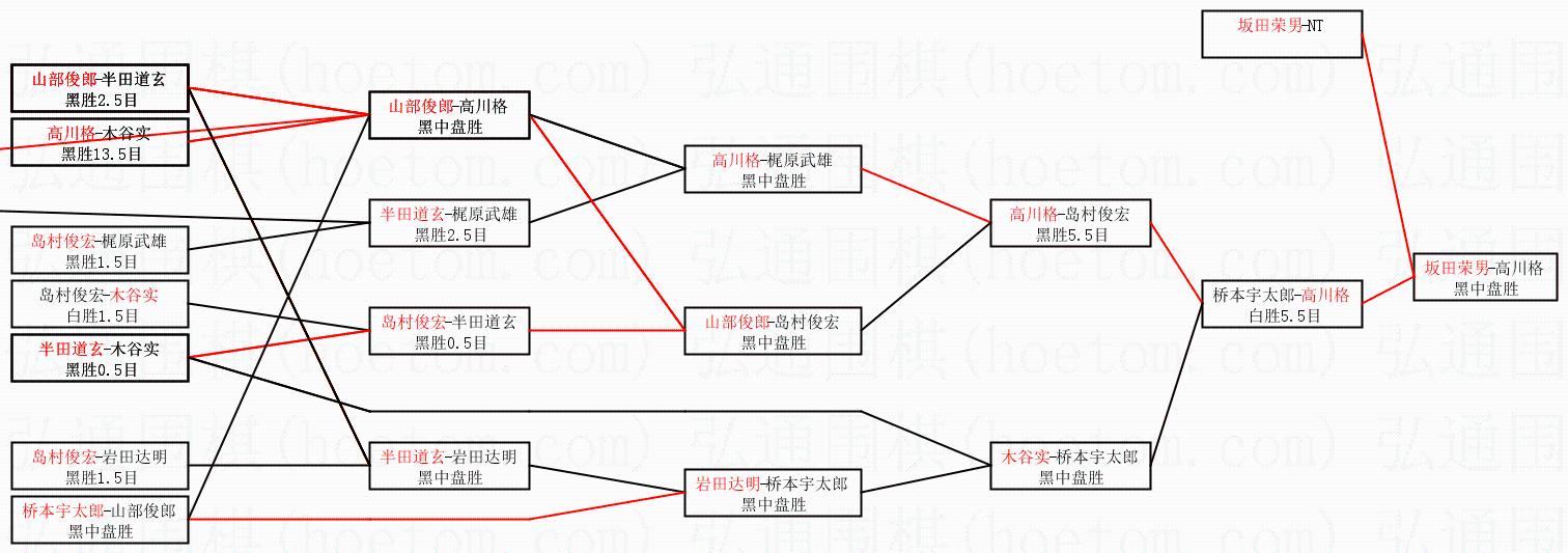 | 1.坂田荣男获得冠军,高川格获得亚军。决赛比分:坂田荣男4:0高川格。棋局: | ||