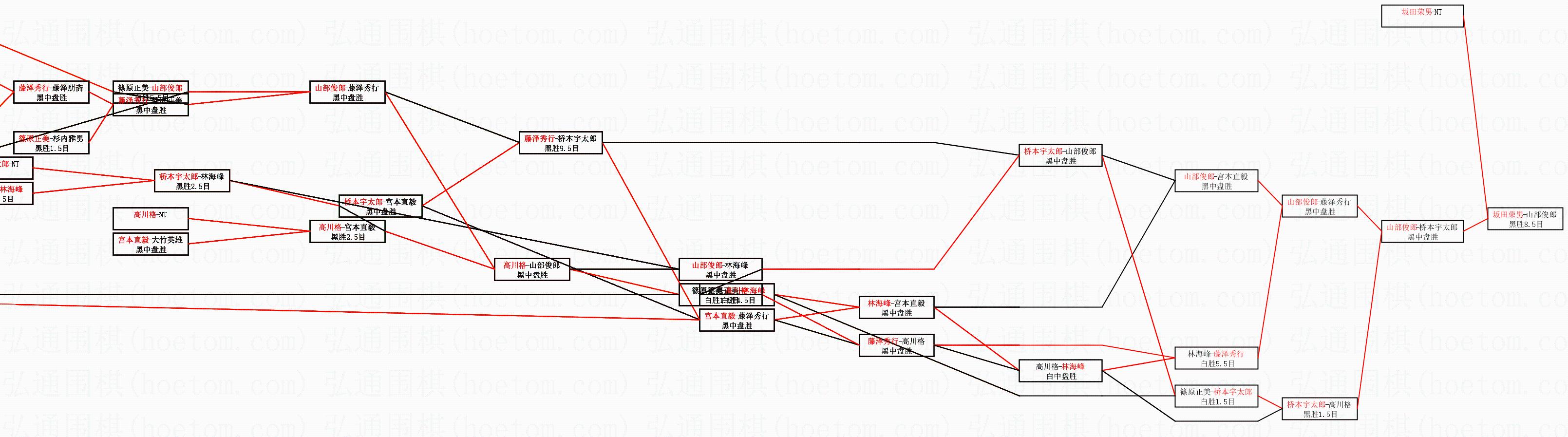 1.坂田荣男获得冠军,山部俊郎获得亚军。决赛比分:坂田荣男4:0山部俊郎。棋局: