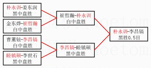 | 1.朴永训获得冠军,李昌镐获得亚军。决赛比分:朴永训2:0李昌镐。棋局: | ||