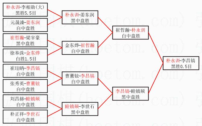| 1.朴永训获得冠军,李昌镐获得亚军。决赛比分:朴永训2:0李昌镐。棋局: | ||