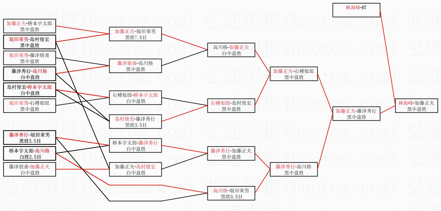 1.林海峰获得冠军,加藤正夫获得亚军。决赛比分:林海峰4:2加藤正夫。棋局: