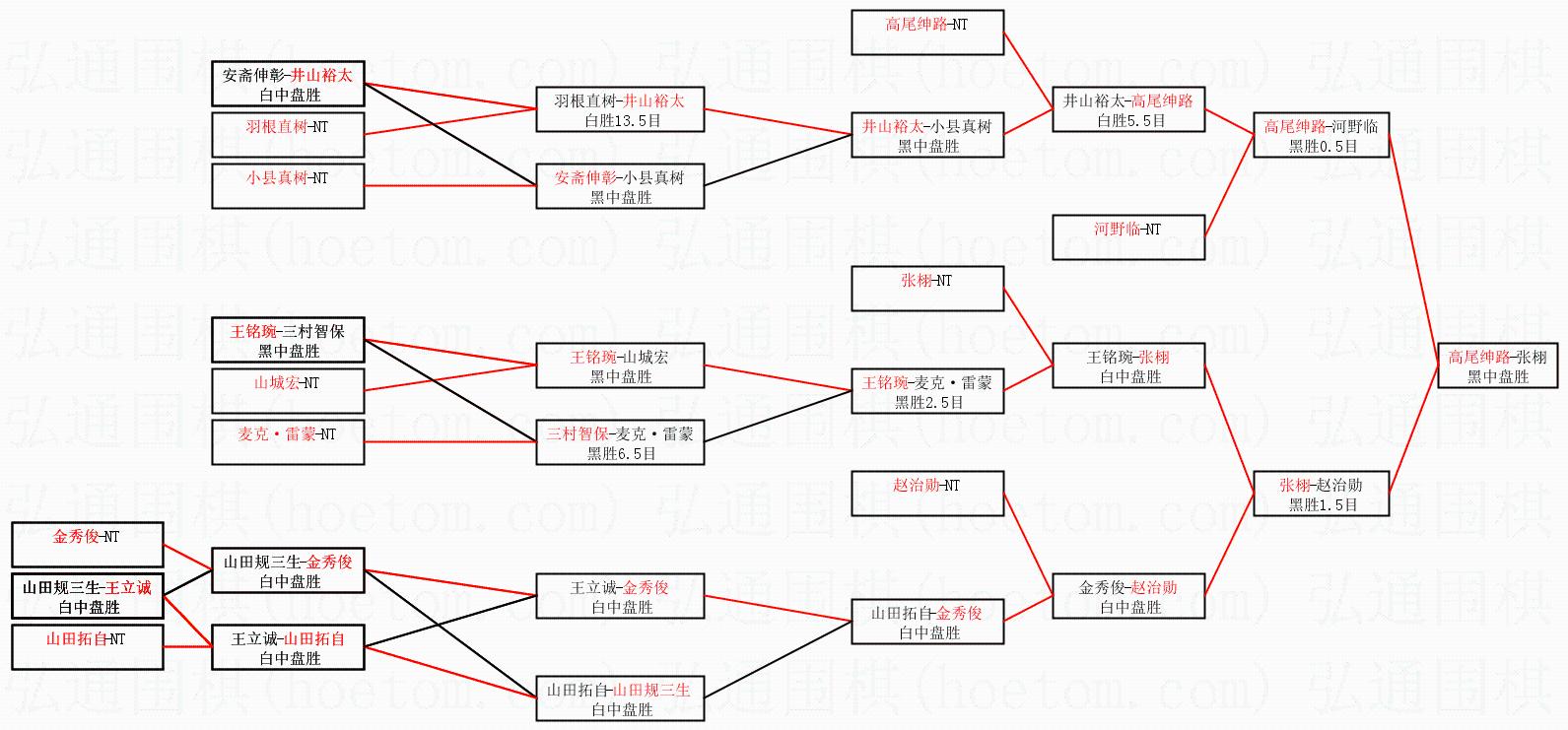 | 1.高尾绅路获得冠军,张栩获得亚军。决赛比分:高尾绅路2:0张栩。棋局: | ||