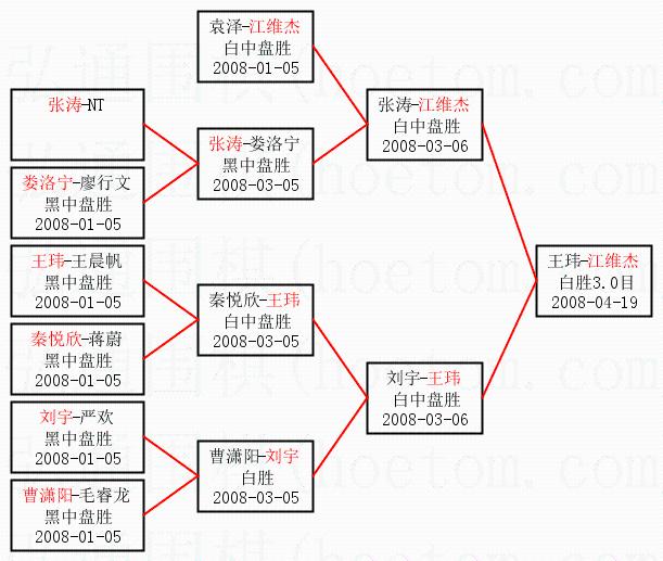 2.上半区半决赛江维杰获胜, 比分:江维杰 1:0 张涛。棋局: