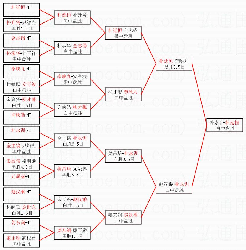 | 1.朴廷桓获得冠军,朴永训获得亚军。决赛比分:朴廷桓3:0朴永训。棋局: | ||