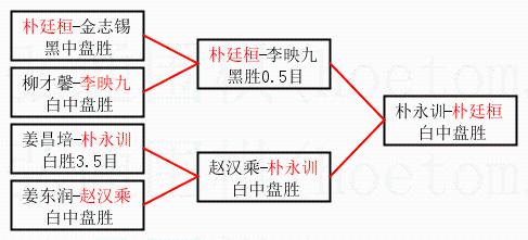 | 1.朴廷桓获得冠军,朴永训获得亚军。决赛比分:朴廷桓3:0朴永训。棋局: | ||