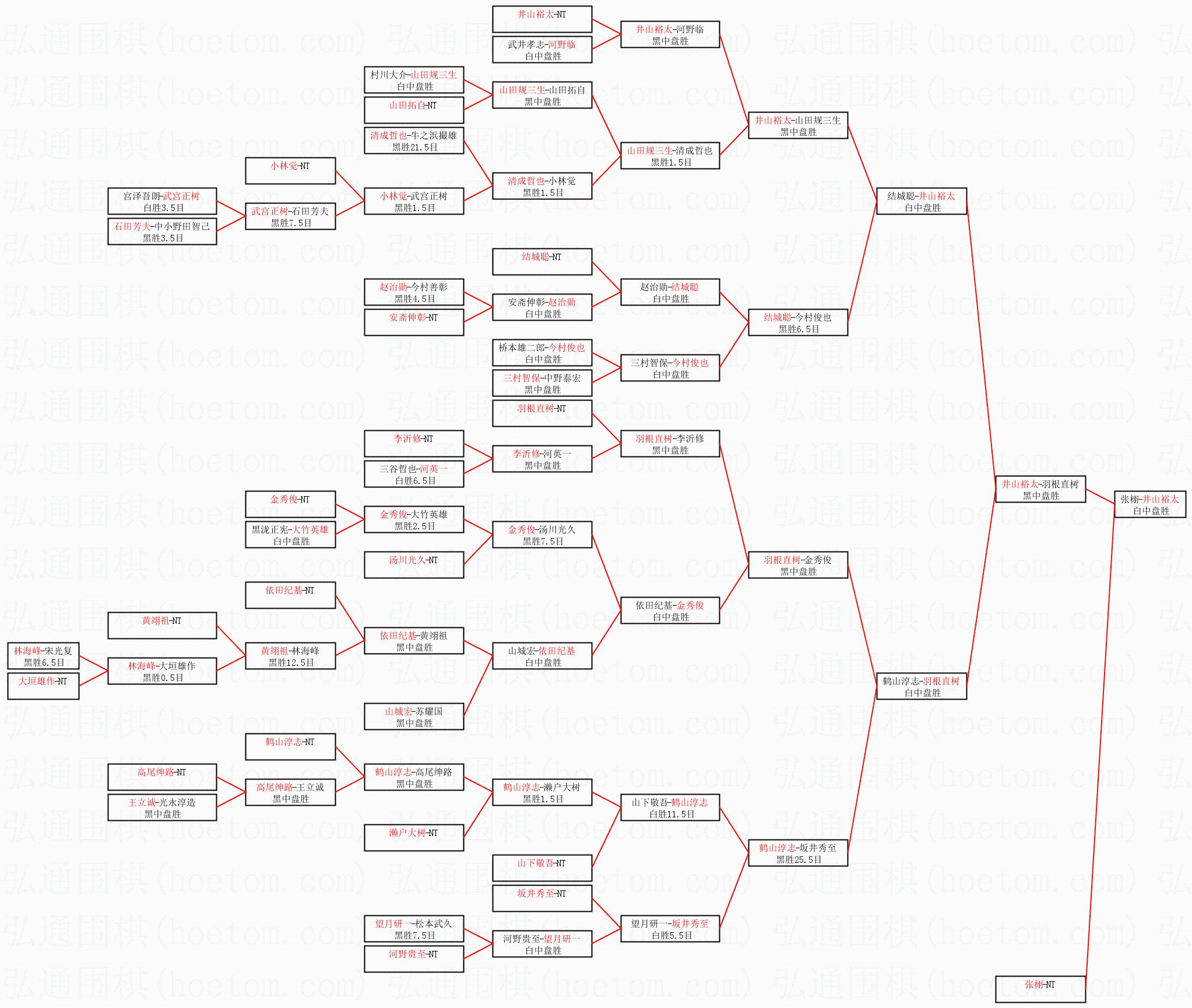 2.上半区半决赛井山裕太获胜, 比分:井山裕太 1:0 羽根直树。棋局: