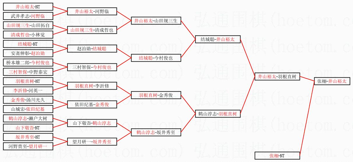 1.井山裕太获得冠军,张栩获得亚军。决赛比分:井山裕太3:0张栩。棋局: