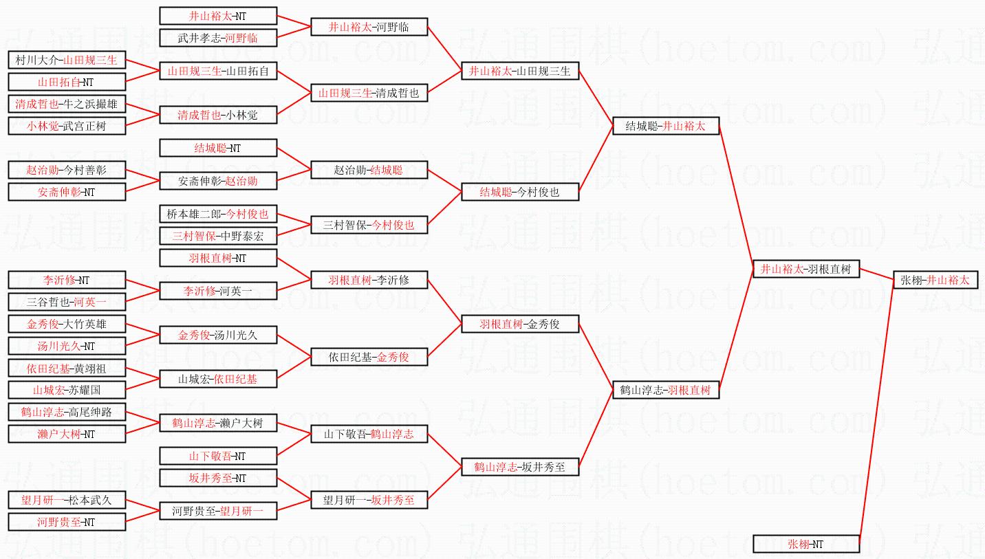 2.上半区半决赛井山裕太获胜, 比分:井山裕太 1:0 羽根直树。棋局:
