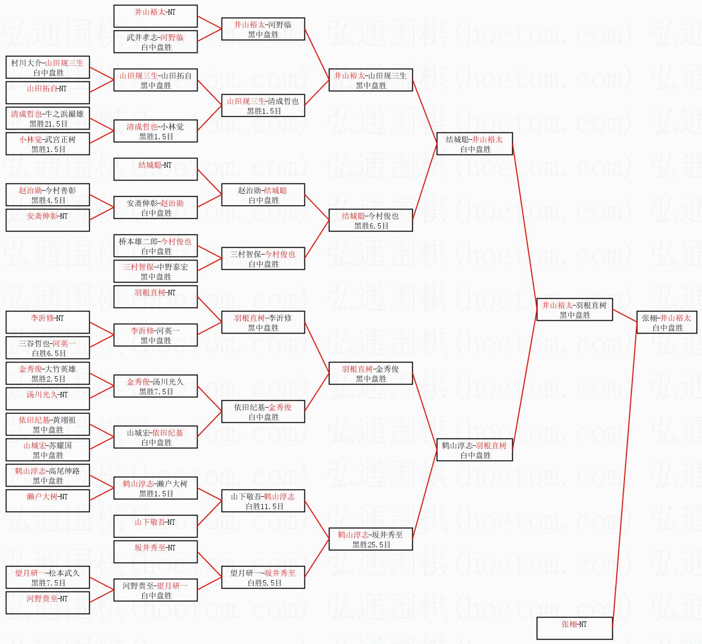 2.上半区半决赛井山裕太获胜, 比分:井山裕太 1:0 羽根直树。棋局: