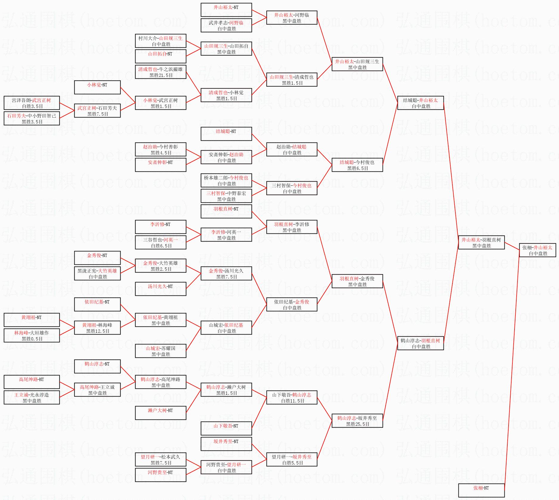 2.上半区半决赛井山裕太获胜, 比分:井山裕太 1:0 羽根直树。棋局: