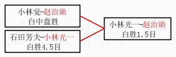 2.上半区半决赛赵治勋获胜, 比分:赵治勋 1:0 小林觉。棋局: