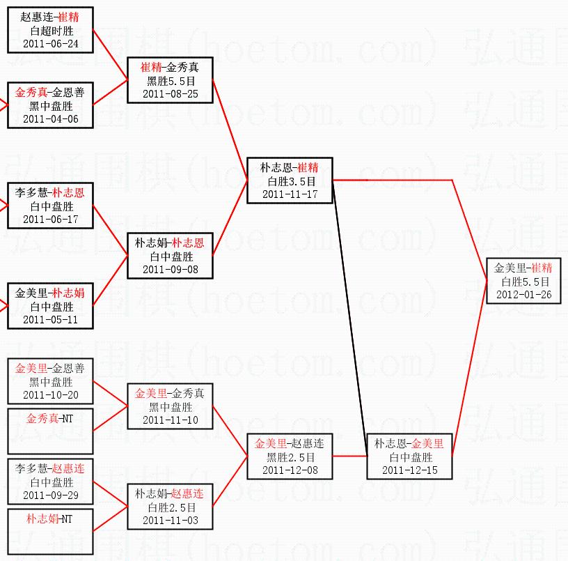 1.崔精获得冠军,金美里获得亚军。决赛比分:崔精2:0金美里。棋局:
