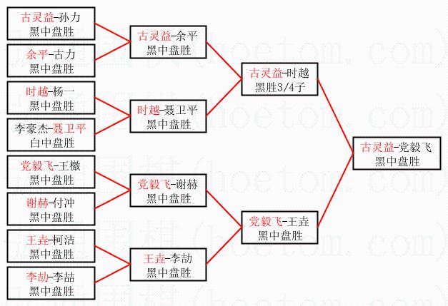 1.古灵益获得冠军,党毅飞获得亚军。决赛比分:古灵益1:0党毅飞。棋局: