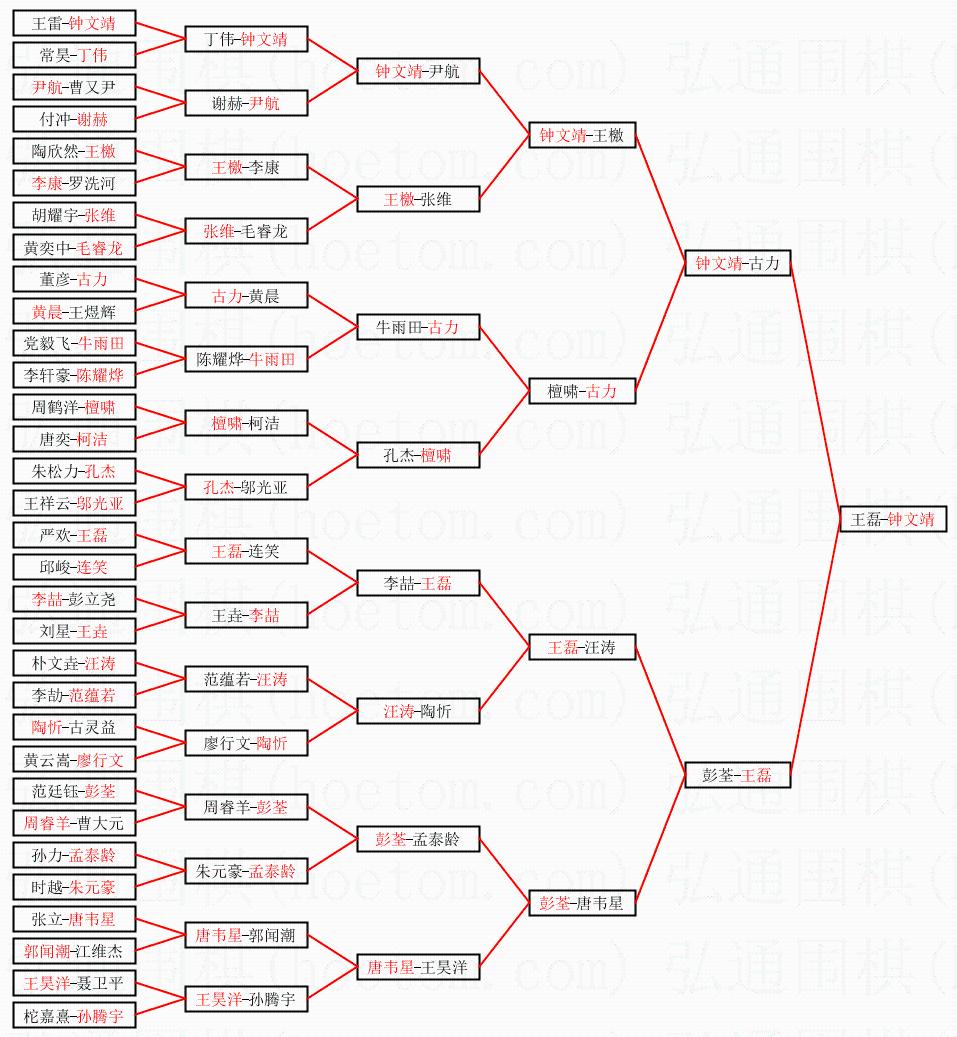 2.上半区半决赛钟文靖获胜, 比分:钟文靖 1:0 古力。棋局: