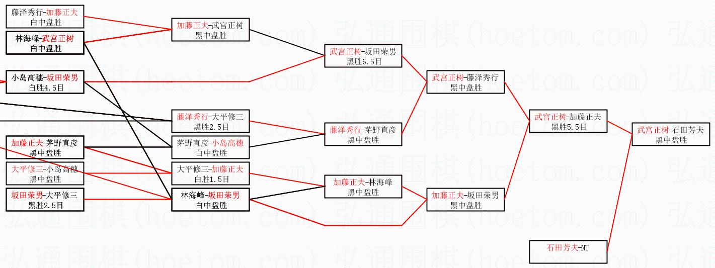 | 1.武宫正树获得冠军,石田芳夫获得亚军。决赛比分:武宫正树4:1石田芳夫。棋局: | ||