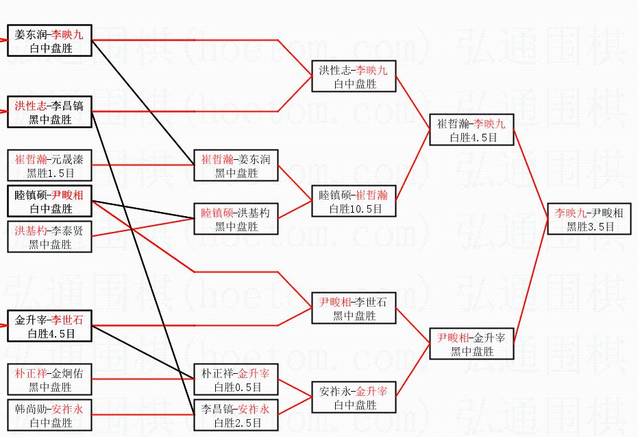 3.下半区半决赛尹畯相获胜,比分:尹畯相1:0金升宰。棋局: