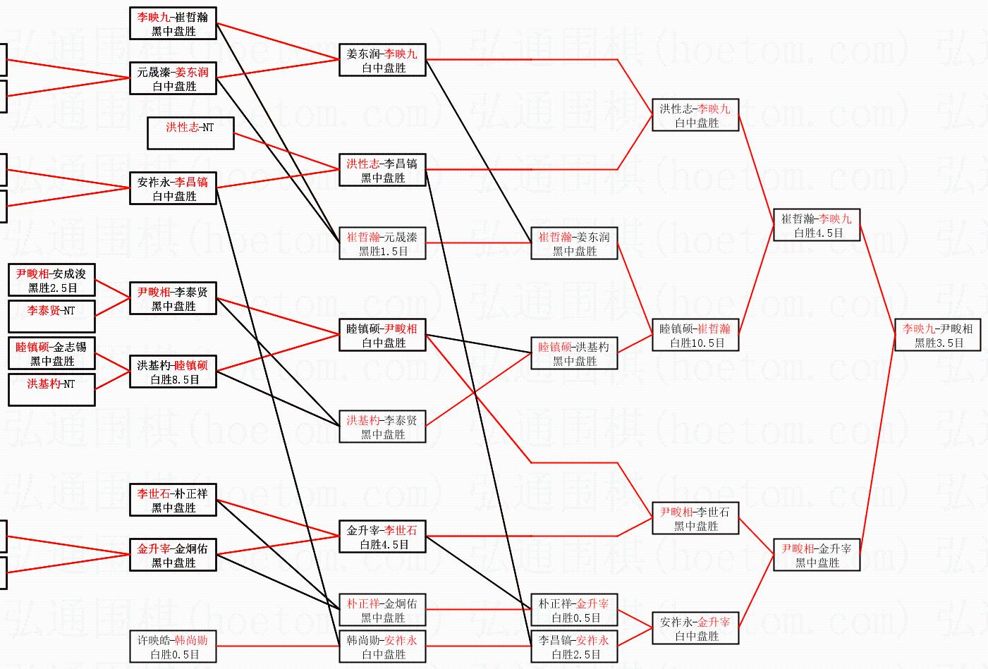 | 3.下半区半决赛尹畯相获胜,比分:尹畯相1:0金升宰。棋局: | ||