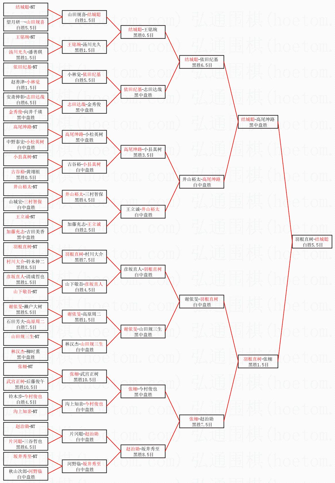 1.结城聪获得冠军,羽根直树获得亚军。决赛比分:结城聪1:0羽根直树。棋局: