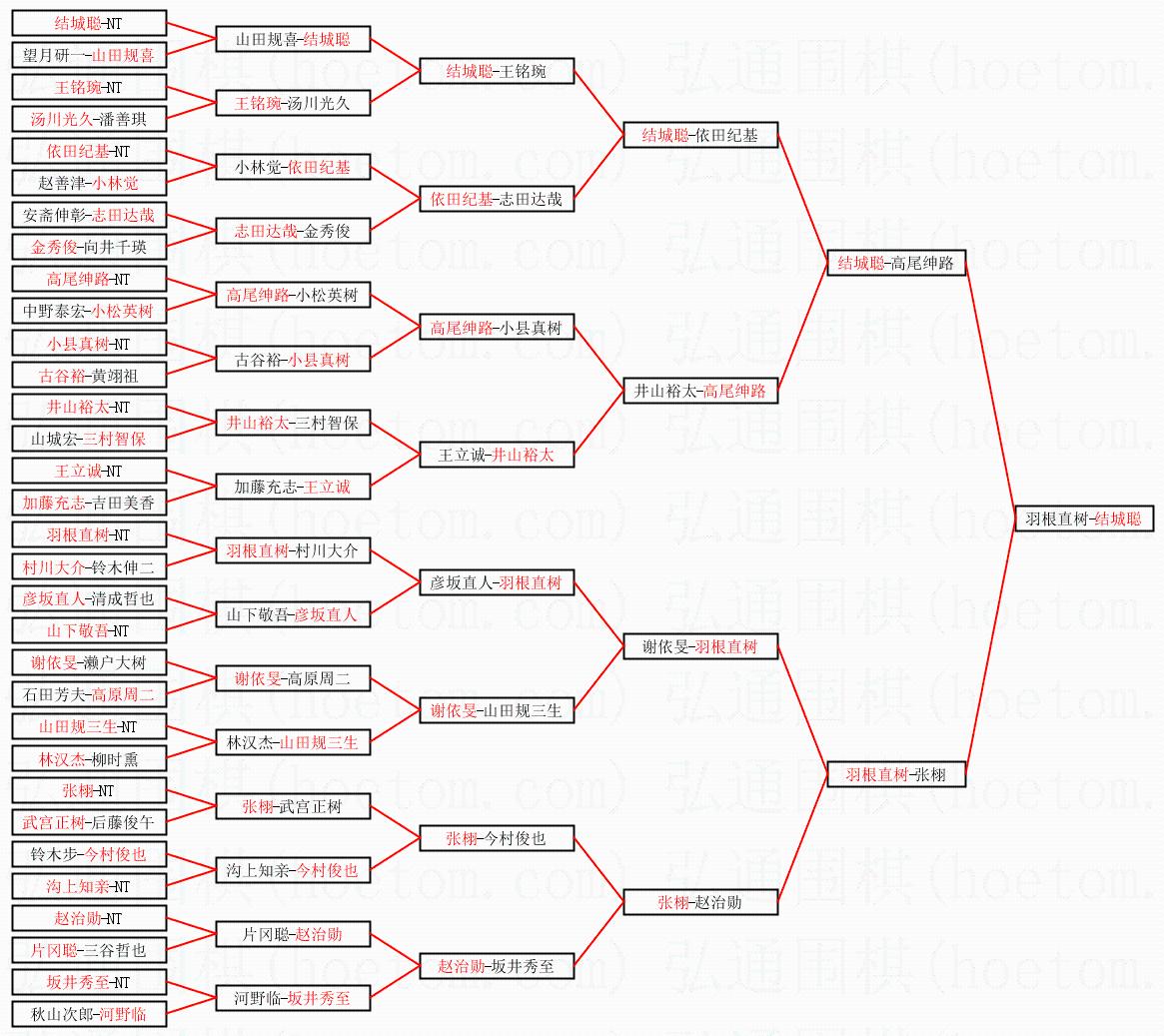 2.上半区半决赛结城聪获胜, 比分:结城聪 1:0 高尾绅路。棋局: