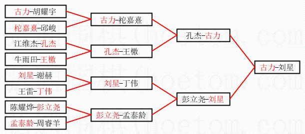 | 1.古力获得冠军,刘星获得亚军。决赛比分:古力2:0刘星。棋局: | ||