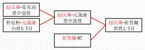 2.上半区半决赛赵汉乘获胜, 比分:赵汉乘 1:0 元晟溱。棋局: