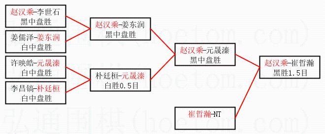 2.上半区半决赛赵汉乘获胜, 比分:赵汉乘 1:0 元晟溱。棋局: