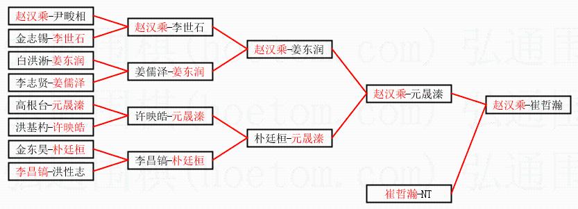 2.上半区半决赛赵汉乘获胜, 比分:赵汉乘 1:0 元晟溱。棋局: