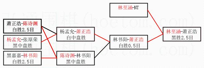 | 3.下半区半决赛萧正浩获胜,比分:萧正浩2:0林书阳。棋局: | ||