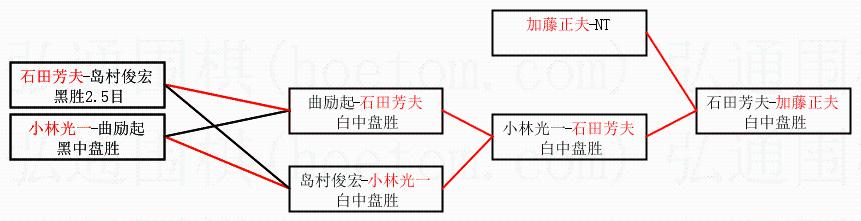 | 3.下半区半决赛石田芳夫获胜,比分:石田芳夫1:0小林光一。棋局: | ||